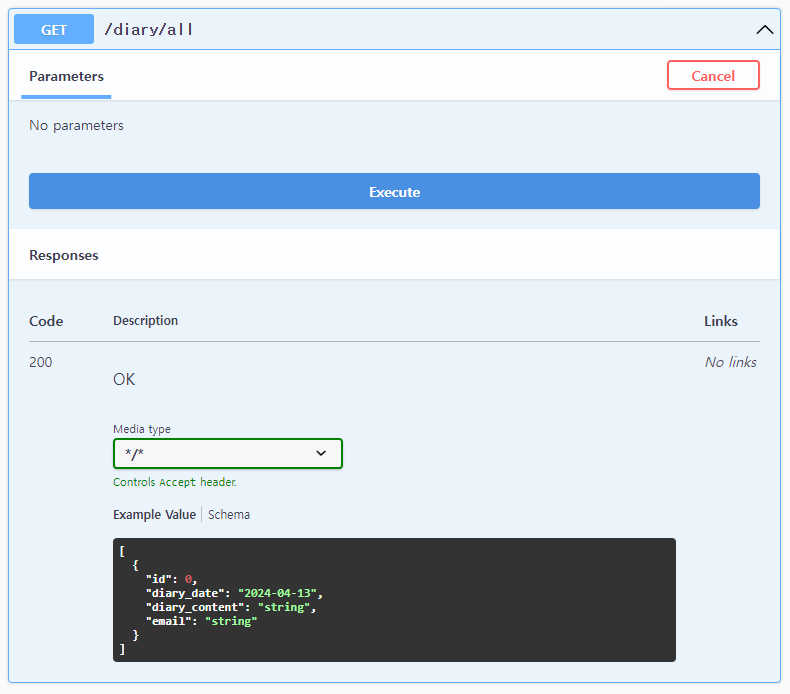 diary 웹 프로그램에 이미 작성되어 있는 /diary/all API 를 호출하는 코드를 작성해볼께.