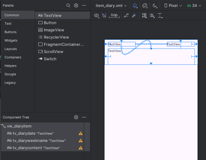 layout 리소스에 item_diary.xml 이라는 이름으로 뷰를 하나 생성해볼께.