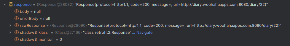 override fun onResponse(call: Call<Diary>, response: Response<Diary>) {