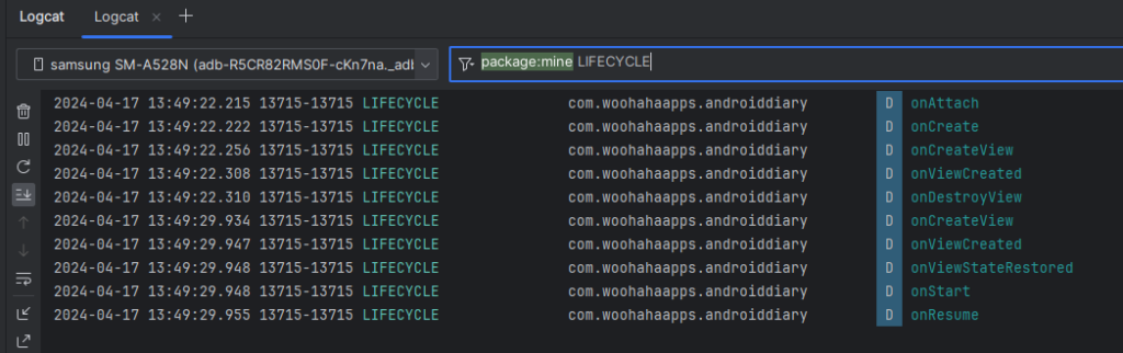 이렇게 로그를 통해서 프래그먼트의 LIFECYCLE 을 확인해봤어.